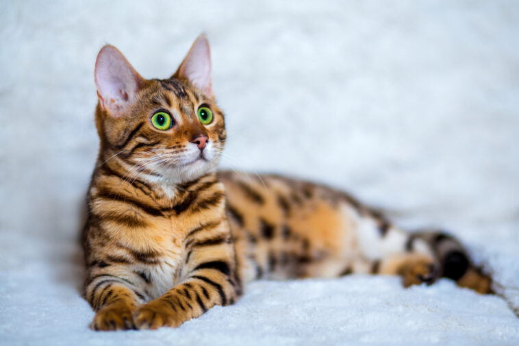 - Die optische Attraktivität der Bengal-Katze spiegelt sich in ihrem Leopard-ähnlichen Fellmuster wider.